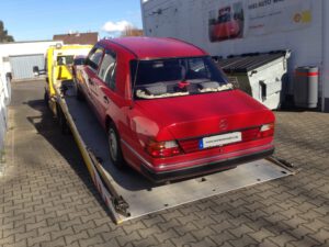 Hallo, mein Name ist Felix, ich bin ein Mercedes Benz 220E, Typ 124. Gebaut wurde ich September 1992, im Oktober desselben Jahres kam ich als Dienstwagen nach Berlin (ja, auch in Farbcode 568 signalrot kann man ein Dienstwagen sein). Nach zwei angenehmen Dienstjahren wurde ich 1994 in den Ruhestand nach Frankfurt geschickt und kam von dort aus in liebevolle Rentnerhände… doch das Schicksal hatte noch Großes mit mir vor und deswegen gibt es jetzt erst mal einen Zeitsprung zum 03.05.2013.