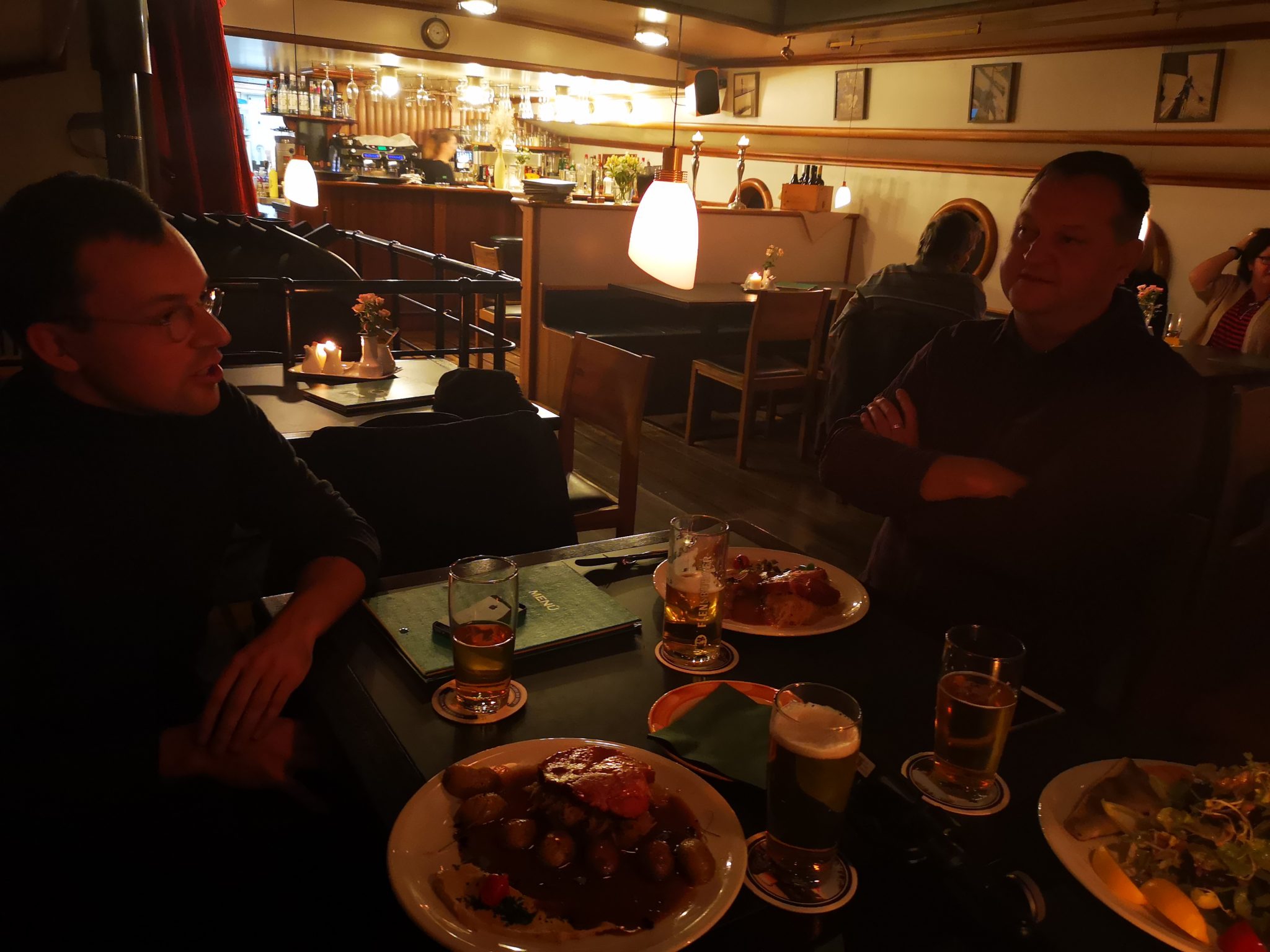 Zu unserer spontanen Sternenzeit erschienen die üblichen Verdächtigen und zwei neue Gesichter Trebor Robertson (Instagram: Peugeot_205GTI) und uns von Instagram bekannt max.ohnmacht. Das Jahr ist weit voran geschritten und so erschienen fast alle mit den Winterfahrzeugen. Die Ausnahme: „Die Auferstehung des Dicken“! er ist einen Tag zuvor fertig geworden! Wer die Leidensgeschichte mit Happy End nochmal lesen möchte Teil 1 , Teil 2 , Teil 3 , Teil 4 , Teil 5 -Happy End . Interessant war das Fahrzeug von max.ohnmacht ein S210 mit M113 in 189 Smaragdschwarz Metallic. Achtung, Rostfrei – da komplett lackiert. Diese Fahrzeug ist das Auto für Ästheten, extreme Laufkultur, gepaart mit Leistung für die linke Spur oder auch stilles cruisen. Tobias zeigte uns sein diesjähriges Winterauto, ein Opel Corsa A 1.2i mit DIN- Kennzeichen. Als Location für unser Treffen wählten wir das Segelschiffrestaurant Klipper. Die Location bietet Wohlfühlathmosphäre und feine Speisen. Das war eine sehr gute Grundlage für unsere Benzingespräche.