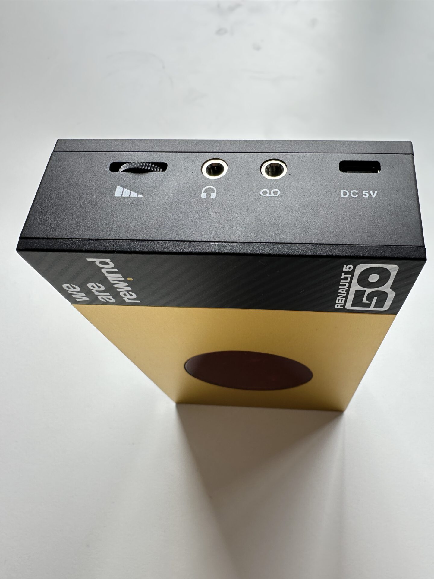 Mir fehlt etwas das Verständnis für die Idee der Marketingstrategen, einen Walkman in den Kontext mit dem Renault R5 zu setzen. Der Renault R5 erschien 1972, der erste Walkman von Sony 1979 und hieß TPS-L2. Aber gut das sie es gemacht haben, sonst gäbe es diesen Bericht nicht. Nach meiner Recherche soll der neue R5 Elektro über einen Aux in Eingang verfügen, damit man den Walkman anschließen kann.